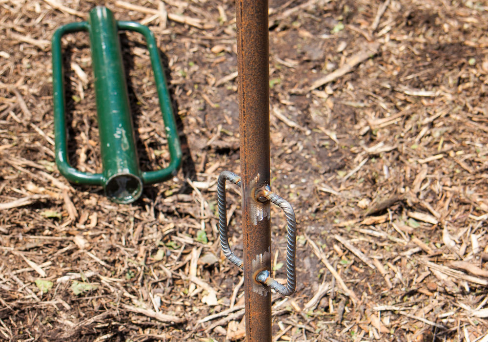 Voor het KAPPLA-verhaal deed de ploeg in nauw overleg met de coördinatoren verschillende tests om het meest geschikte materiaal te vinden om efficiënt wildbescherming (vnl. ursusdraad) te plaatsen. Een van onze vrijwilligers ontwikkelde een palenklopper om betonijzer gemakkelijker in de grond te krijgen. Daarnaast werd een tweede model ontwikkeld waarmee je het betonijzer met je been in de grond duwt.